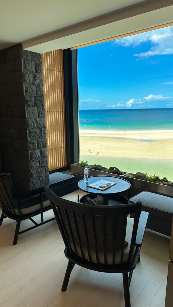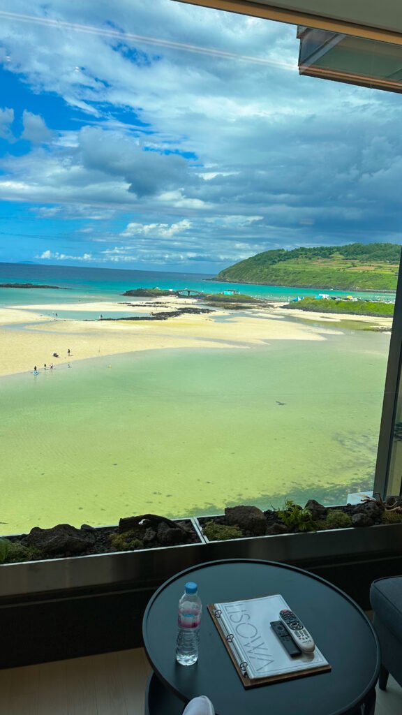 The highlight is without question the view over Hamdeok Beach. From the room, you get a wide, open ocean view that feels peaceful and expansive. Watching the light change throughout the day, from soft morning tones to glowing sunsets, was truly special.